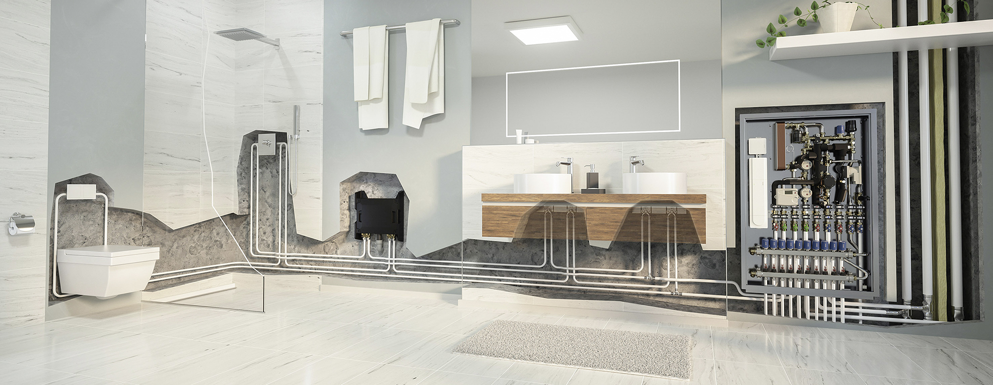 Bei der Sanitärplanung und –installation kümmern wir uns um alles, was mit Wasser und Abwasser zu tun hat. Von Wasserrohren und Anschlüssen für Wasch- und Spülmaschine bis hin zu Dusche, WC und den Rohrleitungen in die Kanalisation. Die Anforderungen in diesem Bereich sind vielfältig. Schließlich gilt es, auch die obersten Stockwerke mit (warmem) Wasser zu versorgen. Pumpen und Anlagen, die den Wasserdruck regeln, müssen optimal eingestellt sein. Deshalb achten wir von der Planung bis zur Ausführung auf Professionalität und Qualität, auch des verwendeten Materials.